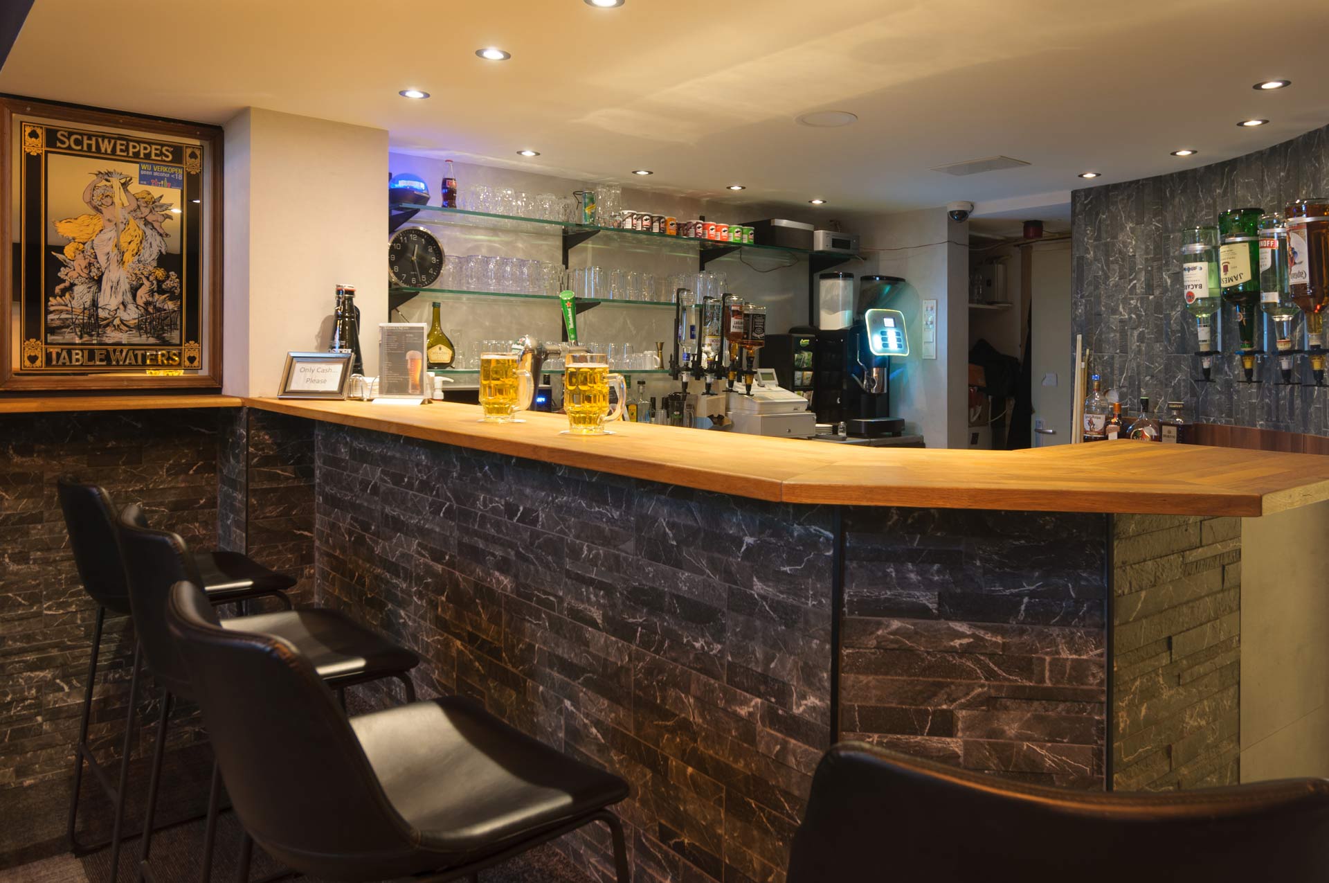Our beloved bar is one of the few bars open in the Red Light District area that is open 24 hours a day. Does this mean we will get unwanted visitors from the neighborhood? Not really, only hotel guests can access our lounge.